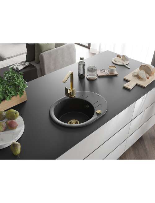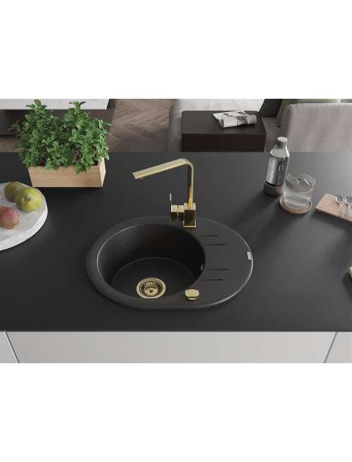 Dane techniczne: Zlewozmywak: Rozmiar: 586x458x190 mm Głębokość komory: 180 mm Szerokość komory: 378x374 mm Średnica odpływu: ø90 mm Typ: 1-komorowy z krótkim ociekaczem Rodzaj: Wpuszczany w blat Kolor: Czarny/Srebrny metalik Wykończenie syfonu: Złoty Materiał: Granit (80% kruszywo granitowe 20% żywice) Otwór przelewowy: Tak Otwory: ( bateria, automat ) 2 Montaż: Uniwersalny, możliwość montażu z ociekaczem po lewej lub prawej stronie Wysoka odporność na zarysowania i przebarwienia Odporność na szok termiczny Powierzchnia ułatwiająca czyszczenie Dwa dodatkowe podfrezowane otwory do samodzielnego wybicia ø35 Bateria kuchenna: Materiał: Mosiądz Kolor: Złoty Głowica: Ceramiczna Perlator: Tak Typ: Jednouchwytowa Wysokość baterii: 290 mm Zasięg wylewki: 220 mm |
