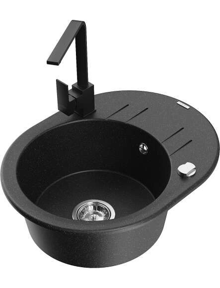 Dane techniczne: Zlewozmywak: Rozmiar: 586x458x190 mm Głębokość komory: 180 mm Szerokość komory: 378x374 mm Średnica odpływu: ø90 mm Typ: 1-komorowy z krótkim ociekaczem Rodzaj: Wpuszczany w blat Kolor: Czarny/Złoty metalik Wykończenie syfonu: Chrom Materiał: Granit (80% kruszywo granitowe 20% żywice) Otwór przelewowy: Tak Otwory: ( bateria, automat ) 2 Montaż: Uniwersalny, możliwość montażu z ociekaczem po lewej lub prawej stronie Wysoka odporność na zarysowania i przebarwienia Odporność na szok termiczny Powierzchnia ułatwiająca czyszczenie Dwa dodatkowe podfrezowane otwory do samodzielnego wybicia ø35 Bateria kuchenna: Materiał: Mosiądz Kolor: Czarny Głowica: Ceramiczna Perlator: Tak Typ: Jednouchwytowa Wysokość baterii: 290 mm Zasięg wylewki: 220 mm |