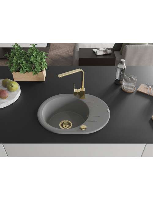 Dane techniczne: Zlewozmywak: Rozmiar: 586x458x190 mm Głębokość komory: 180 mm Szerokość komory: 378x374 mm Średnica odpływu: ø90 mm Typ: 1-komorowy z krótkim ociekaczem Rodzaj: Wpuszczany w blat Kolor: Szary Wykończenie syfonu: Złoty Materiał: Granit (80% kruszywo granitowe 20% żywice) Otwór przelewowy: Tak Otwory: ( bateria, automat ) 2 Montaż: Uniwersalny, możliwość montażu z ociekaczem po lewej lub prawej stronie Wysoka odporność na zarysowania i przebarwienia Odporność na szok termiczny Powierzchnia ułatwiająca czyszczenie Dwa dodatkowe podfrezowane otwory do samodzielnego wybicia ø35 Bateria kuchenna: Materiał: Mosiądz Kolor: Złoty Głowica: Ceramiczna Perlator: Tak Typ: Jednouchwytowa Wysokość baterii: 290 mm Zasięg wylewki: 220 mm |