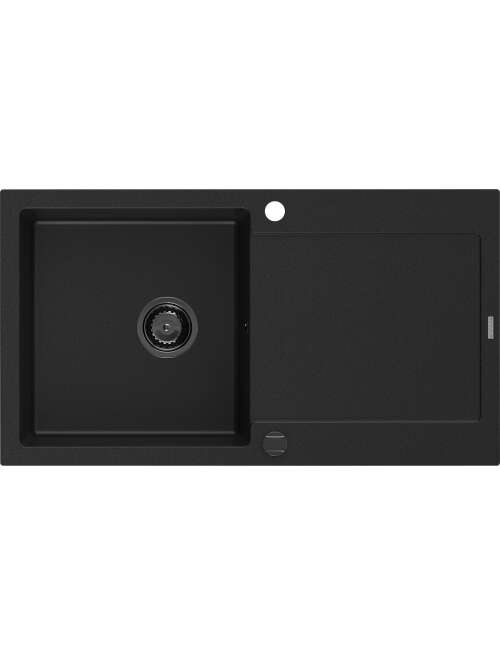 Mexen Leo zlewozmywak granitowy 1-komorowy z ociekaczem 900 x 500 mm, czarny, syfon czarny - 6501901010-77-B