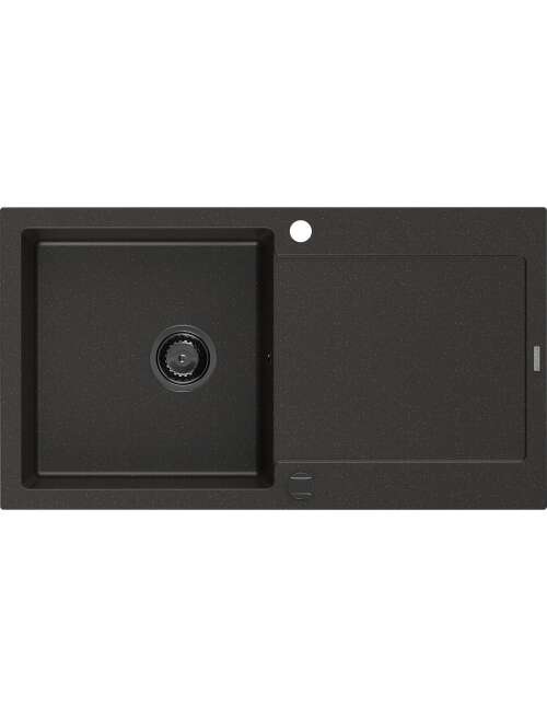 Dane techniczne: Rozmiar: 900x500x190 mm Głębokość komory: 180 mm Wymiary komory: 430x415 mm Średnica odpływu: ø90 mm Rodzaj: 1-komorowy z ociekaczem Typ: Wpuszczany w blat Materiał: Granit Kolor: Czarny/Złoty metalik Wykończenie syfonu: Czarny Otwór przelewowy: Tak Otwór na baterie: Tak Syfon automatyczny w komplecie Wysoka odporność na zarysowania i przebarwienia Odporność na szok termiczny Powierzchnia ułatwiająca czyszczenie Dwa dodatkowe podfrezowane otwory do samodzielnego wybicia ø35 |