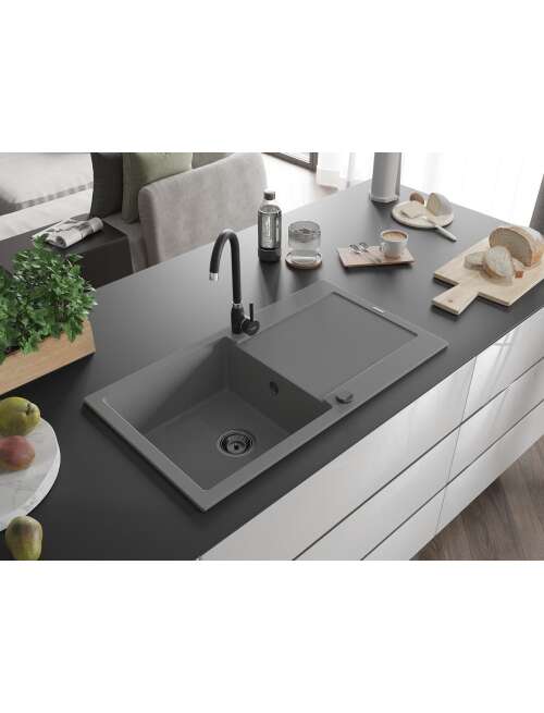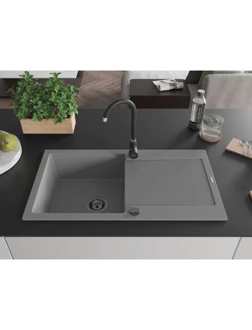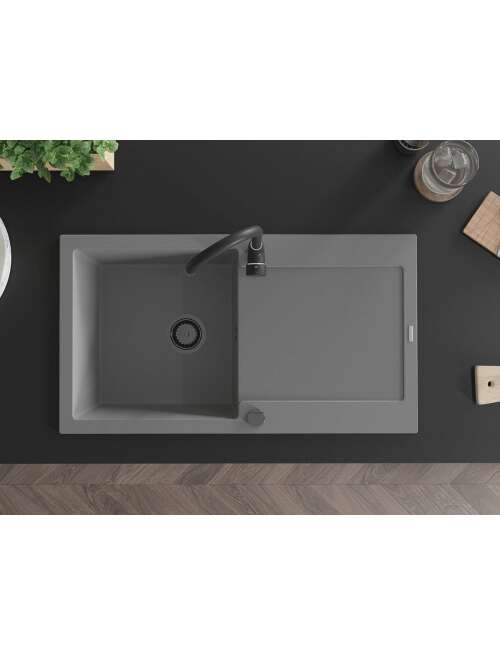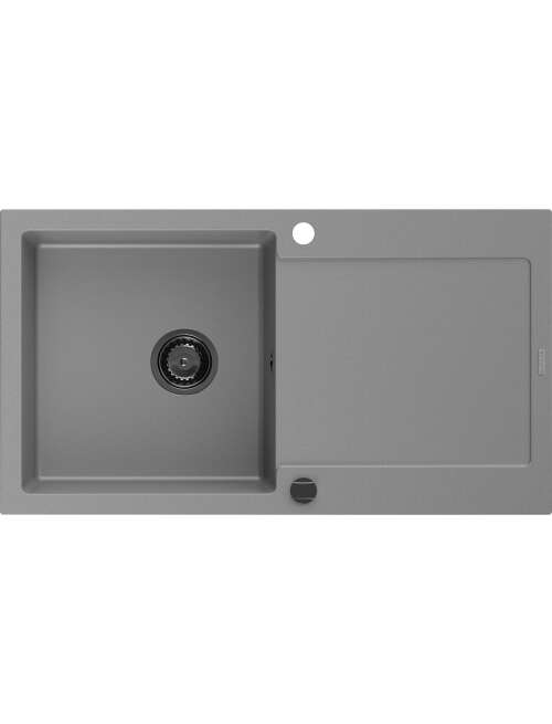 Mexen Leo zlewozmywak granitowy 1-komorowy z ociekaczem 900 x 500 mm, szary, syfon czarny - 6501901010-71-B
