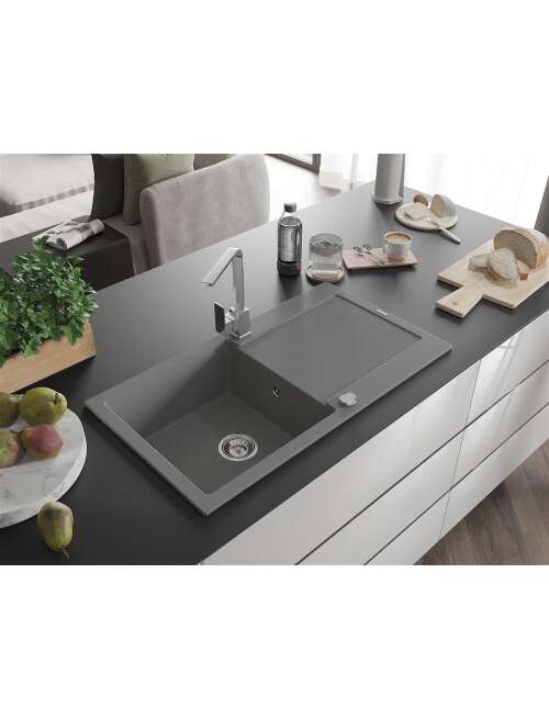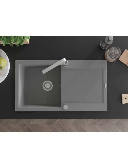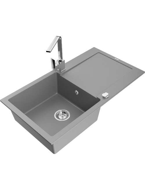 Mexen Leo zlewozmywak granitowy 1-komorowy z ociekaczem i baterią kuchenną Rita, szary - 6501-71-670300-00