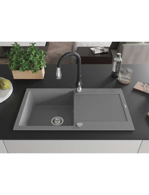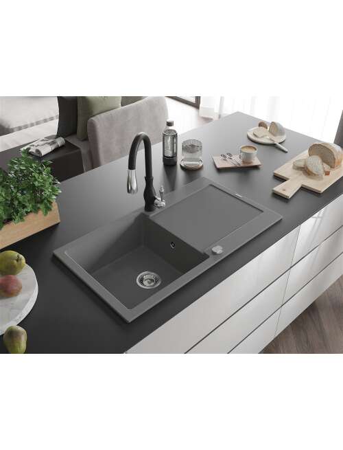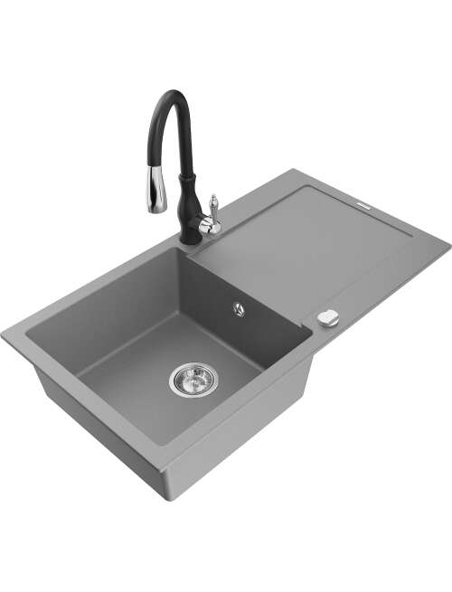 Dane techniczne: Zlewozmywak: Rozmiar: 900x500x190 mm Głębokość komory: 180 mm Wymiary komory: 430x415 mm Średnica odpływu: ø90 mm Typ: 1-komorowy z ociekaczem Rodzaj: Wpuszczany w blat Kolor: Szary Wykończenie syfonu: Chrom Materiał: Granit (80% kruszywo granitowe 20% żywice) Otwór przelewowy: Tak Otwory: ( bateria, automat ) 2 Montaż: Uniwersalny, możliwość montażu z ociekaczem po lewej lub prawej stronie Wysoka odporność na zarysowania i przebarwienia Odporność na szok termiczny Powierzchnia ułatwiająca czyszczenie Dwa dodatkowe podfrezowane otwory do samodzielnego wybicia ø35 Bateria kuchenna: Materiał: Mosiądz Kolor: Czarny Głowica: Ceramiczna Perlator: Tak Wysokość baterii: 410 mm Zasięg wylewki: 231 mm |