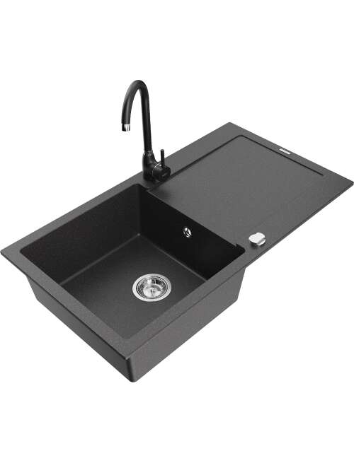 Dane techniczne: Zlewozmywak: Rozmiar: 900x500x190 mm Głębokość komory: 180 mm Wymiary komory: 430x415 mm Średnica odpływu: ø90 mm Typ: 1-komorowy z ociekaczem Rodzaj: Wpuszczany w blat Kolor: Czarny nakrapiamy Wykończenie syfonu: Chrom Materiał: Granit (80% kruszywo granitowe 20% żywice) Otwór przelewowy: Tak Otwory: ( bateria, automat ) 2 Montaż: Uniwersalny, możliwość montażu z ociekaczem po lewej lub prawej stronie Wysoka odporność na zarysowania i przebarwienia Odporność na szok termiczny Powierzchnia ułatwiająca czyszczenie Dwa dodatkowe podfrezowane otwory do samodzielnego wybicia ø35 Bateria kuchenna: Materiał: Mosiądz Kolor: Czarny Głowica: Ceramiczna Perlator: Tak Typ: Jednouchwytowa Wysokość baterii: 335 mm Zasięg wylewki: 180 mm |