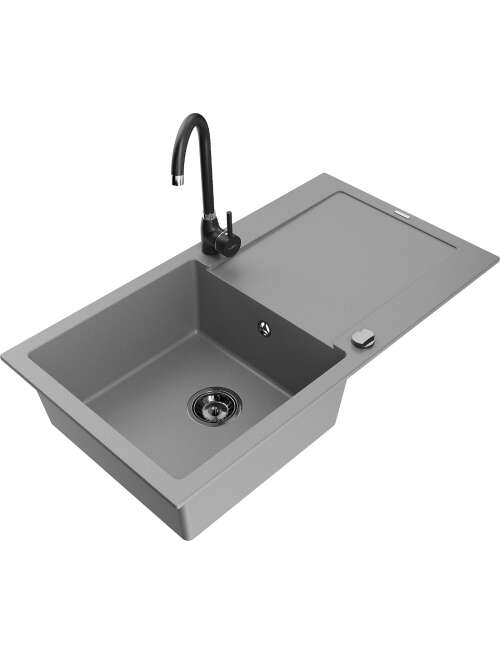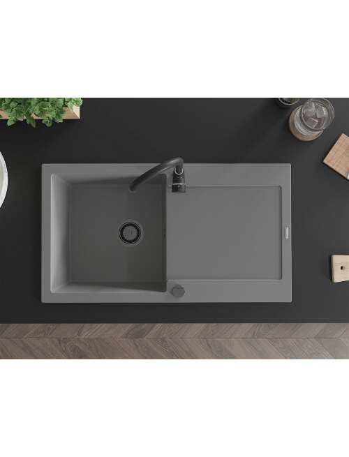 Dane techniczne: Zlewozmywak: Rozmiar: 900x500x190 mm Głębokość komory: 180 mm Wymiary komory: 430x415 mm Średnica odpływu: ø90 mm Typ: 1-komorowy z ociekaczem Rodzaj: Wpuszczany w blat Kolor: Szary Wykończenie syfonu: Czarny Materiał: Granit (80% kruszywo granitowe 20% żywice) Otwór przelewowy: Tak Otwory: ( bateria, automat ) 2 Montaż: Uniwersalny, możliwość montażu z ociekaczem po lewej lub prawej stronie Wysoka odporność na zarysowania i przebarwienia Odporność na szok termiczny Powierzchnia ułatwiająca czyszczenie Dwa dodatkowe podfrezowane otwory do samodzielnego wybicia ø35 Bateria kuchenna: Materiał: Mosiądz Kolor: Czarny Głowica: Ceramiczna Perlator: Tak Typ: Jednouchwytowa Wysokość baterii: 335 mm Zasięg wylewki: 180 mm |