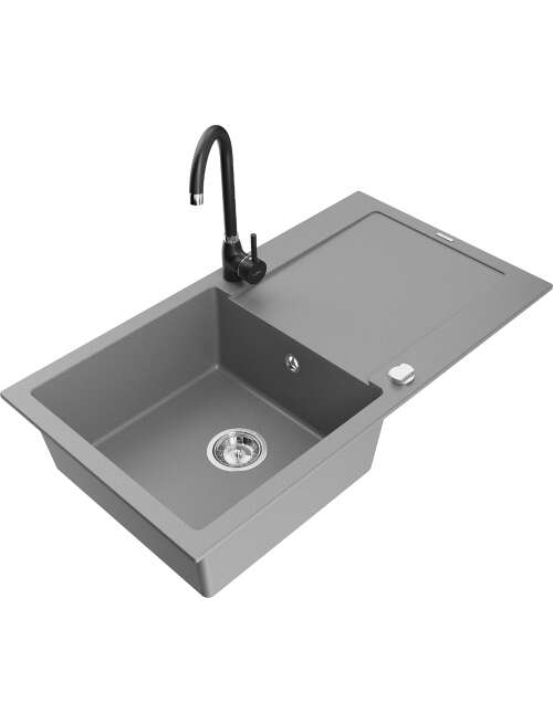 Dane techniczne: Zlewozmywak: Rozmiar: 900x500x190 mm Głębokość komory: 180 mm Wymiary komory: 430x415 mm Średnica odpływu: ø90 mm Typ: 1-komorowy z ociekaczem Rodzaj: Wpuszczany w blat Kolor: Szary Wykończenie syfonu: Chrom Materiał: Granit (80% kruszywo granitowe 20% żywice) Otwór przelewowy: Tak Otwory: ( bateria, automat ) 2 Montaż: Uniwersalny, możliwość montażu z ociekaczem po lewej lub prawej stronie Wysoka odporność na zarysowania i przebarwienia Odporność na szok termiczny Powierzchnia ułatwiająca czyszczenie Dwa dodatkowe podfrezowane otwory do samodzielnego wybicia ø35 Bateria kuchenna: Materiał: Mosiądz Kolor: Czarny Głowica: Ceramiczna Perlator: Tak Typ: Jednouchwytowa Wysokość baterii: 335 mm Zasięg wylewki: 180 mm |