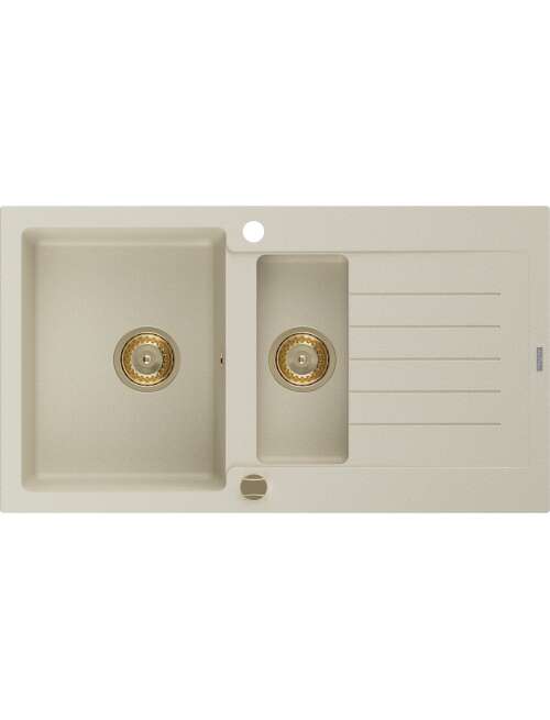 Mexen Matias zlewozmywak granitowy 1,5-komorowy z ociekaczem 900 x 505 mm, beżowy, syfon złoty - 6502901505-69-G