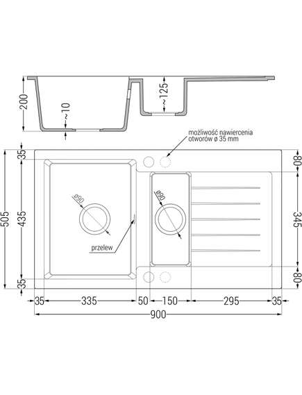 | Технические характеристики: Раковина: Размер: 900x505x200 мм Глубина ›Камера: 180 мм (больше), 115 мм (меньше) Размеры камеры: 435x335 мм (больше), 345x150 мм (меньше) ‚Ywu: Гё90 мм Тип : 1,5 камеры с коротким сливом Тип: встроенный в поверхность стола Цвет: В черный/золотой металлик Материал: Гранит (80% гранитный заполнитель 20 % смолы) Отверстие для перелива: Да Отверстий: (аккумулятор, автоматический) 2 Крепление: универсальное, вариант монтажа с левым или правым сливом Высокая стойкость к царапинам и обесцвечиванию Стойкость к термоударам Легкая очистка поверхности Два дополнительных фрезерованных отверстия для самоформирующейся штамповки Гё35< / Смеситель для кухни: Материал: Латунь Dz Цвет: Черный Картридж: Керамический Жемчуг: Да / p> Высота батареи: 335 мм Дальность пролива с: 180 мм |