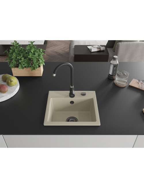 Dane techniczne: Rozmiar: 435x410x171 mm Głębokość komory: 161 mm Wymiary komory: 375x280 mm Średnica odpływu: ø90 mm Rodzaj: 1-komorowy Typ: Wpuszczany w blat Materiał: Granit Kolor: Beżowy Wykończenie syfonu: Czarny Otwór przelewowy: Tak Otwór na baterie: Tak Syfon automatyczny w komplecie Wysoka odporność na zarysowania i przebarwienia Odporność na szok termiczny Powierzchnia ułatwiająca czyszczenie Jeden dodatkowy podfrezowany otwór do samodzielnego wybicia ø35 |
