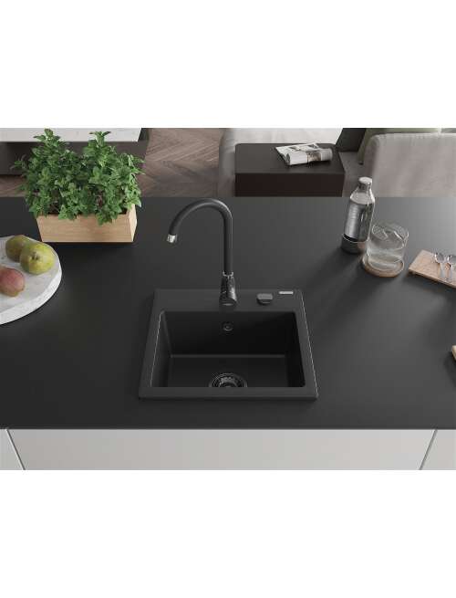 Dane techniczne: Rozmiar: 435x410x171 mm Głębokość komory: 161 mm Wymiary komory: 375x280 mm Średnica odpływu: ø90 mm Rodzaj: 1-komorowy Typ: Wpuszczany w blat Materiał: Granit Kolor: Czarny Wykończenie syfonu: Czarny Otwór przelewowy: Tak Otwór na baterie: Tak Syfon automatyczny w komplecie Wysoka odporność na zarysowania i przebarwienia Odporność na szok termiczny Powierzchnia ułatwiająca czyszczenie Jeden dodatkowy podfrezowany otwór do samodzielnego wybicia ø35 |