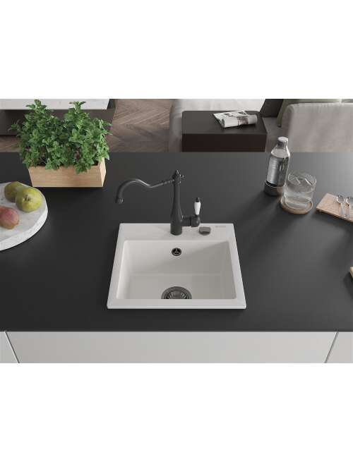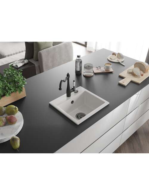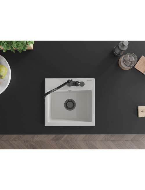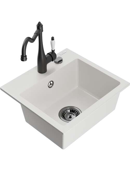Dane techniczne: Zlewozmywak: Rozmiar: 435x410x171 mm Głębokość komory: 161 mm Wymiary komory: 375x280 mm Średnica odpływu: ø90 mm Typ: 1-komorowy Rodzaj: Wpuszczany w blat Kolor: Biały Wykończenie syfonu: Czarny Materiał: Granit (80% kruszywo granitowe 20% żywice) Otwór przelewowy: Tak Otwory: ( bateria, automat ) 2 Wysoka odporność na zarysowania i przebarwienia Odporność na szok termiczny Powierzchnia ułatwiająca czyszczenie Jeden dodatkowy podfrezowany otwór do samodzielnego wybicia ø35 Bateria kuchenna: Materiał: Mosiądz Kolor: Czarny Głowica: Ceramiczna Perlator: Tak Typ: Jednouchwytowa Wysokość baterii: 290 mm Zasięg wylewki: 260 mm |
