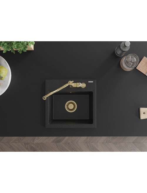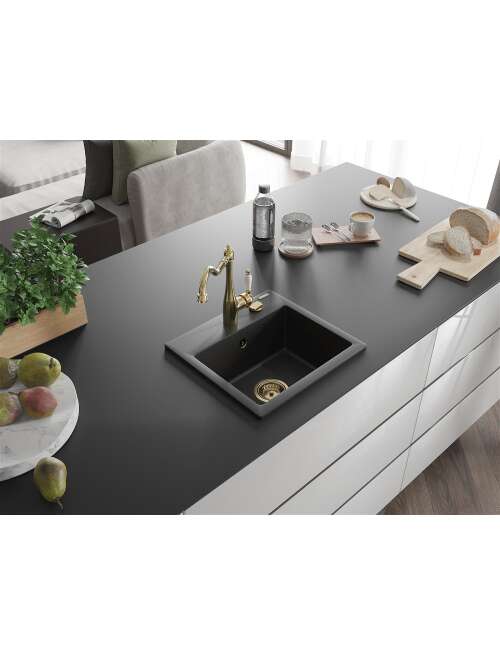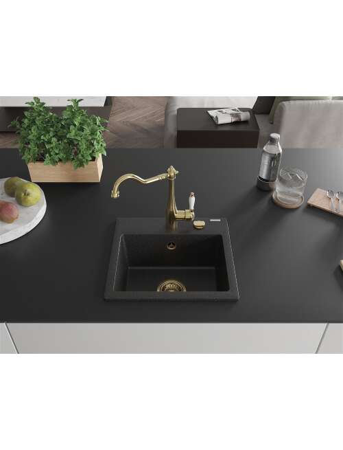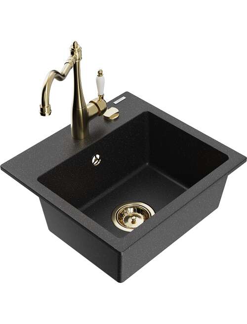Mexen Milo zlewozmywak granitowy 1-komorowy z baterią kuchenną Carla, czarny/srebrny metalik - 6505-73-670700-50