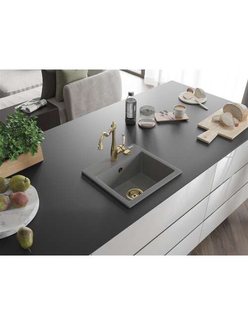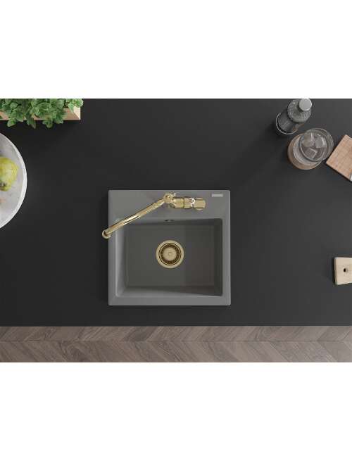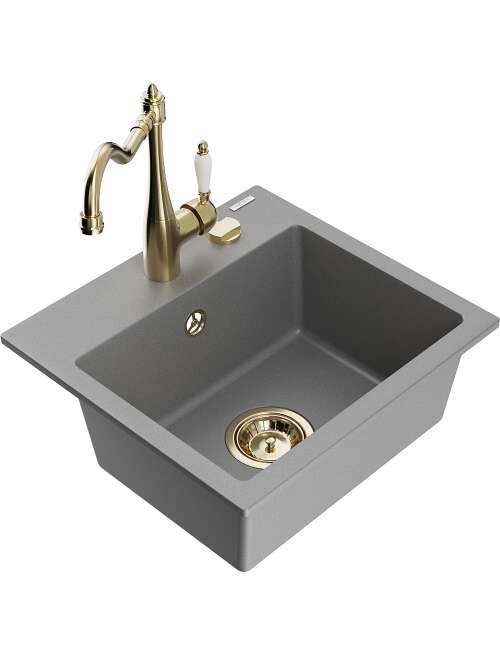 Mexen Milo zlewozmywak granitowy 1-komorowy z baterią kuchenną Carla, szary - 6505-71-670700-50