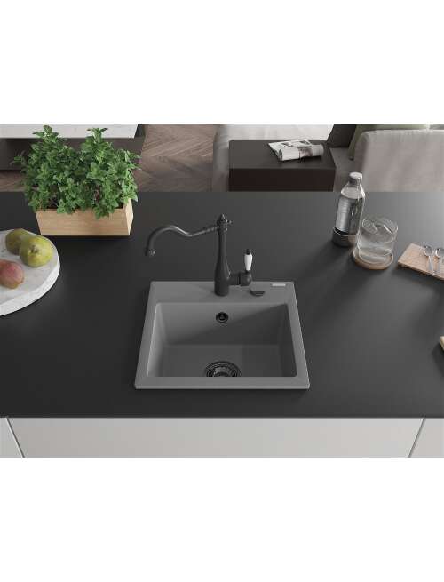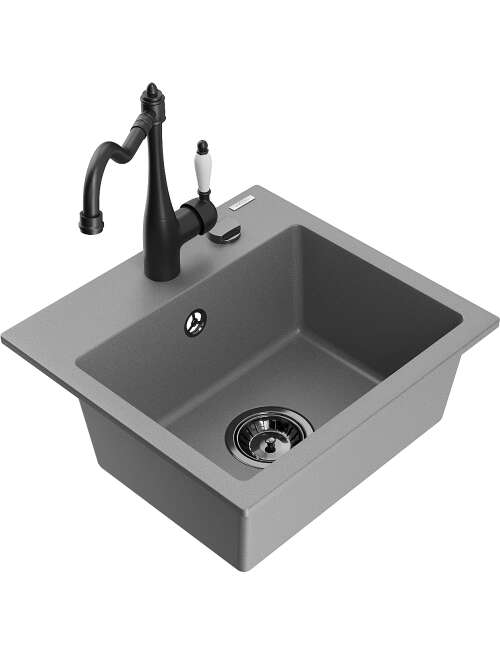 Dane techniczne: Zlewozmywak: Rozmiar: 435x410x171 mm Głębokość komory: 161 mm Wymiary komory: 375x280 mm Średnica odpływu: ø90 mm Typ: 1-komorowy Rodzaj: Wpuszczany w blat Kolor: Szary Wykończenie syfonu: Czarny Materiał: Granit (80% kruszywo granitowe 20% żywice) Otwór przelewowy: Tak Otwory: ( bateria, automat ) 2 Wysoka odporność na zarysowania i przebarwienia Odporność na szok termiczny Powierzchnia ułatwiająca czyszczenie Jeden dodatkowy podfrezowany otwór do samodzielnego wybicia ø35 Bateria kuchenna: Materiał: Mosiądz Kolor: Czarny Głowica: Ceramiczna Perlator: Tak Typ: Jednouchwytowa Wysokość baterii: 290 mm Zasięg wylewki: 260 mm |