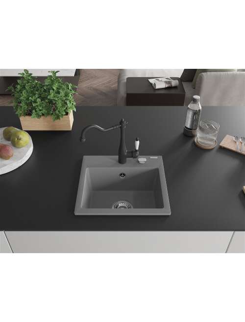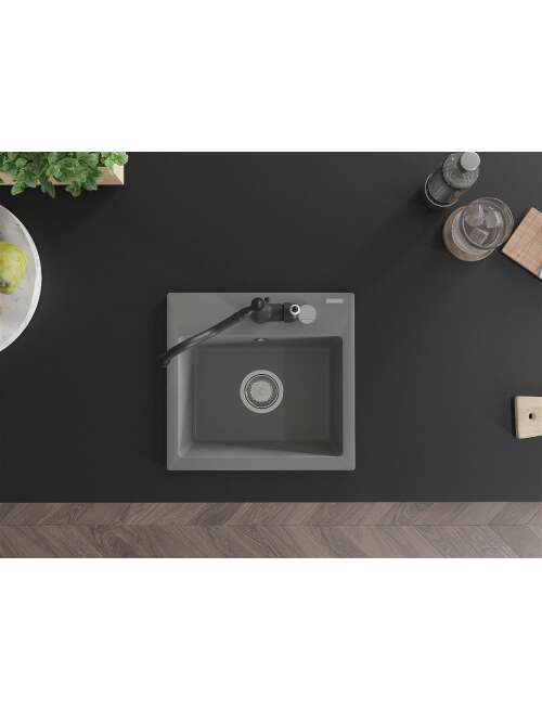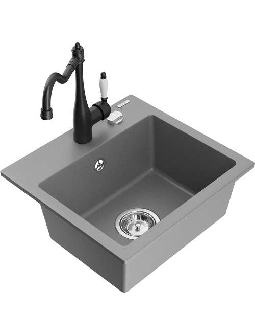Dane techniczne: Zlewozmywak: Rozmiar: 435x410x171 mm Głębokość komory: 161 mm Wymiary komory: 375x280 mm Średnica odpływu: ø90 mm Typ: 1-komorowy Rodzaj: Wpuszczany w blat Kolor: Szary Wykończenie syfonu: Chrom Materiał: Granit (80% kruszywo granitowe 20% żywice) Otwór przelewowy: Tak Otwory: ( bateria, automat ) 2 Wysoka odporność na zarysowania i przebarwienia Odporność na szok termiczny Powierzchnia ułatwiająca czyszczenie Jeden dodatkowy podfrezowany otwór do samodzielnego wybicia ø35 Bateria kuchenna: Materiał: Mosiądz Kolor: Czarny Głowica: Ceramiczna Perlator: Tak Typ: Jednouchwytowa Wysokość baterii: 290 mm Zasięg wylewki: 260 mm |