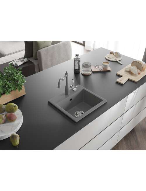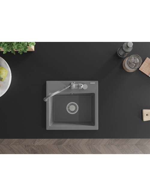 Mexen Milo zlewozmywak granitowy 1-komorowy z baterią kuchenną Carla, szary - 6505-71-670700-71
