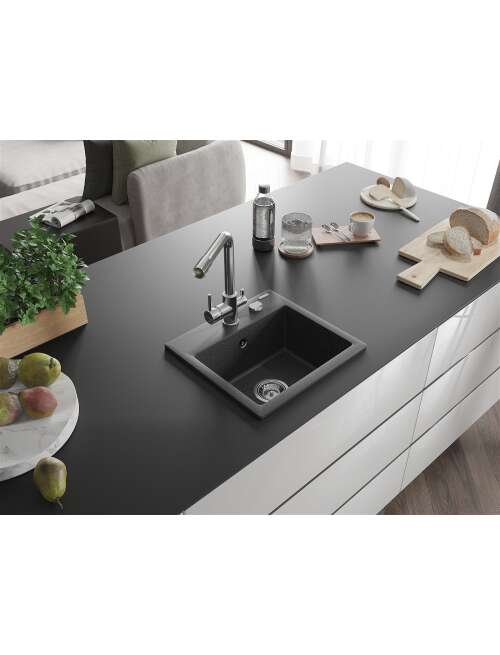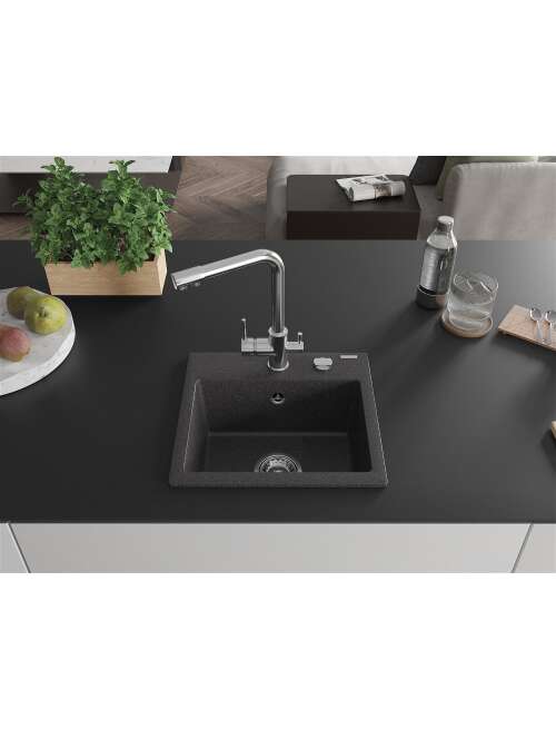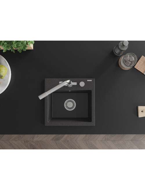 Mexen Milo zlewozmywak granitowy 1-komorowy z baterią kuchenną Duero, czarny nakrapiany - 6505-76-671600-00