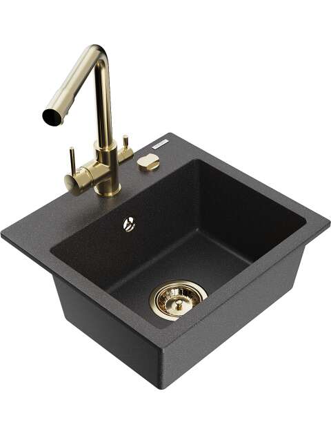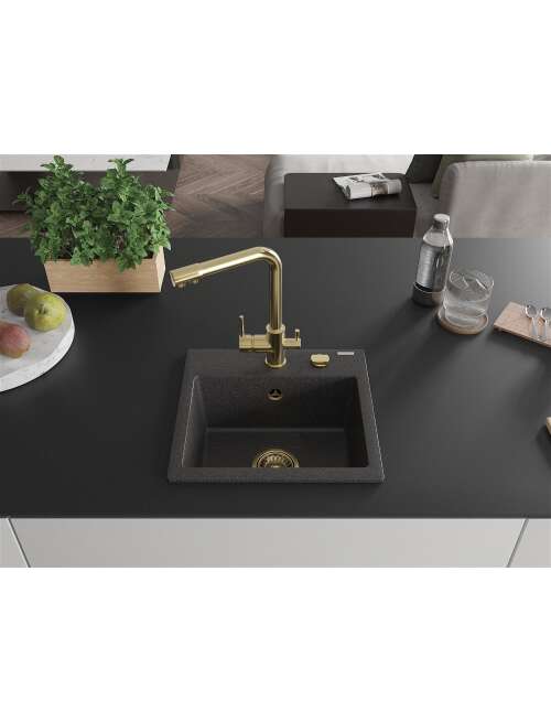 Mexen Milo zlewozmywak granitowy 1-komorowy z baterią kuchenną Duero, czarny nakrapiany - 6505-76-671600-50