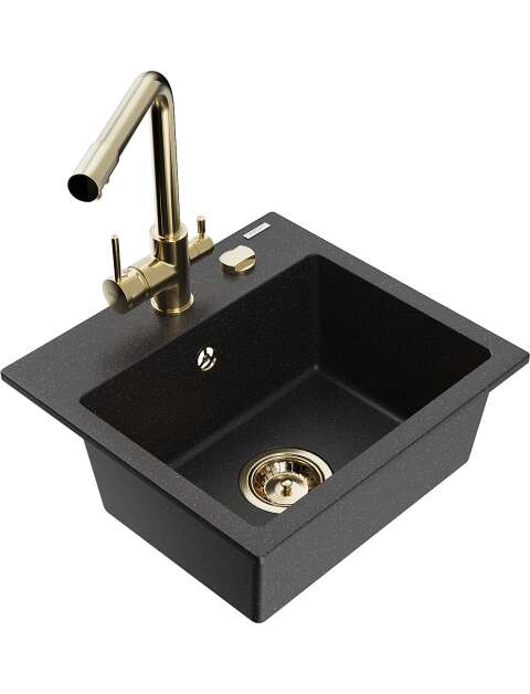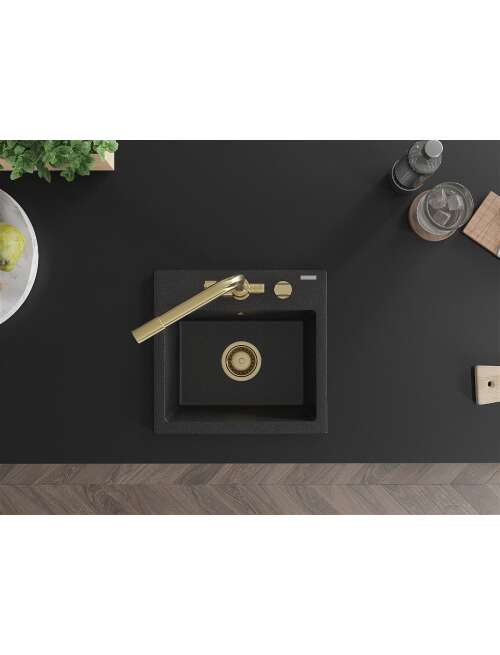 Mexen Milo zlewozmywak granitowy 1-komorowy z baterią kuchenną Duero, czarny/srebrny metalik - 6505-73-671600-50