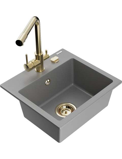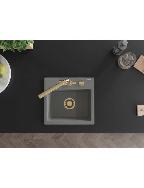 Mexen Milo zlewozmywak granitowy 1-komorowy z baterią kuchenną Duero, szary - 6505-71-671600-50