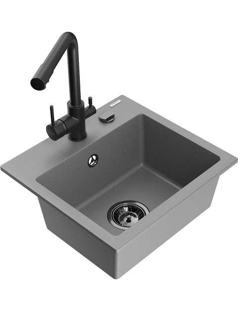 Mexen Milo zlewozmywak granitowy 1-komorowy z baterią kuchenną Duero, szary - 6505-71-671600-70-B