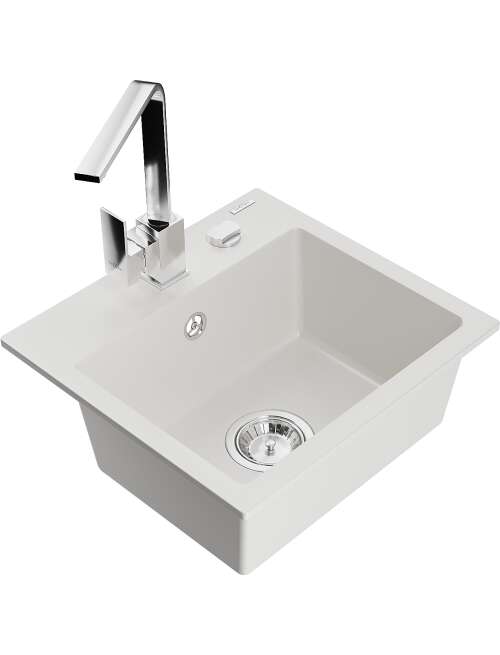 Mexen Milo zlewozmywak granitowy 1-komorowy z baterią kuchenną Rita, biały - 6505-20-670300-00
