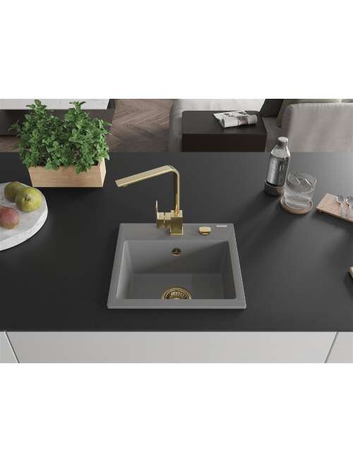 Mexen Milo zlewozmywak granitowy 1-komorowy z baterią kuchenną Rita, szary - 6505-71-670300-50