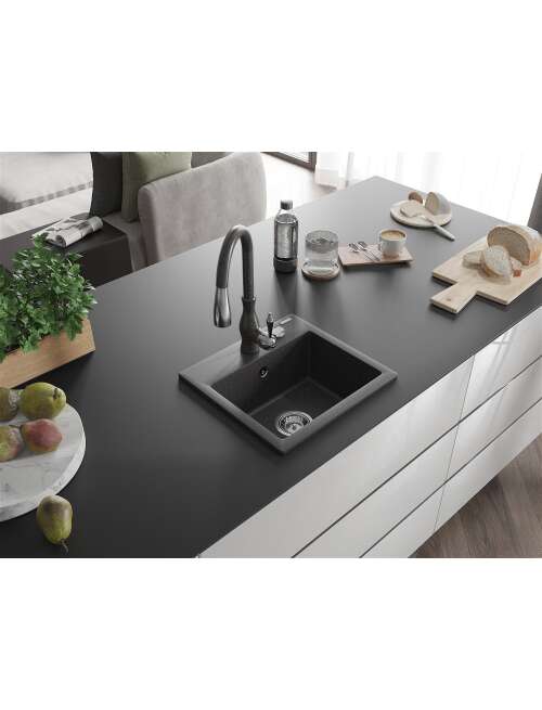Dane techniczne: Zlewozmywak: Rozmiar: 435x410x171 mm Głębokość komory: 161 mm Wymiary komory: 375x280 mm Średnica odpływu: ø90 mm Typ: 1-komorowy Rodzaj: Wpuszczany w blat Kolor: Czarny nakrapiany Wykończenie syfonu: Chrom Materiał: Granit (80% kruszywo granitowe 20% żywice) Otwór przelewowy: Tak Otwory: ( bateria, automat ) 2 Wysoka odporność na zarysowania i przebarwienia Odporność na szok termiczny Powierzchnia ułatwiająca czyszczenie Jeden dodatkowy podfrezowany otwór do samodzielnego wybicia ø35 Bateria kuchenna: Materiał: Mosiądz Kolor: Czarny nakrapiany Głowica: Ceramiczna Perlator: Tak Typ: Jednouchwytowa Wysokość baterii: 410 mm Zasięg wylewki: 231 mm |