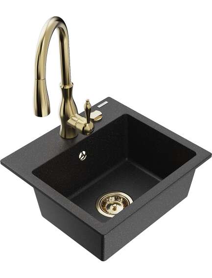 Dane techniczne: Zlewozmywak: Rozmiar: 435x410x171 mm Głębokość komory: 161 mm Wymiary komory: 375x280 mm Średnica odpływu: ø90 mm Typ: 1-komorowy Rodzaj: Wpuszczany w blat Kolor: Czarny/Srebrny metalik Wykończenie syfonu: Złoty Materiał: Granit (80% kruszywo granitowe 20% żywice) Otwór przelewowy: Tak Otwory: ( bateria, automat ) 2 Wysoka odporność na zarysowania i przebarwienia Odporność na szok termiczny Powierzchnia ułatwiająca czyszczenie Jeden dodatkowy podfrezowany otwór do samodzielnego wybicia ø35 Bateria kuchenna: Materiał: Mosiądz Kolor: Złoty Głowica: Ceramiczna Perlator: Tak Typ: Jednouchwytowa Wysokość baterii: 410 mm Zasięg wylewki: 231 mm |