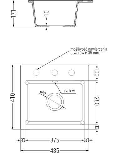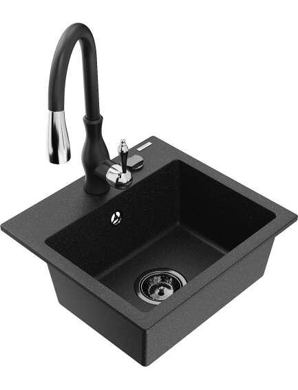 Dane techniczne: Zlewozmywak: Rozmiar: 435x410x171 mm Głębokość komory: 161 mm Wymiary komory: 375x280 mm Średnica odpływu: ø90 mm Typ: 1-komorowy Rodzaj: Wpuszczany w blat Kolor: Czarny/Srebrny metalik Wykończenie syfonu: Czarny Materiał: Granit (80% kruszywo granitowe 20% żywice) Otwór przelewowy: Tak Otwory: ( bateria, automat ) 2 Wysoka odporność na zarysowania i przebarwienia Odporność na szok termiczny Powierzchnia ułatwiająca czyszczenie Jeden dodatkowy podfrezowany otwór do samodzielnego wybicia ø35 Bateria kuchenna: Materiał: Mosiądz Kolor: Czarny Głowica: Ceramiczna Perlator: Tak Typ: Jednouchwytowa Wysokość baterii: 410 mm Zasięg wylewki: 231 mm |