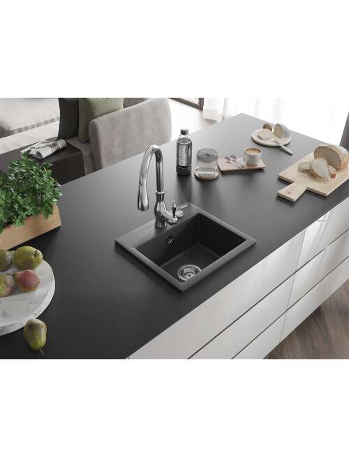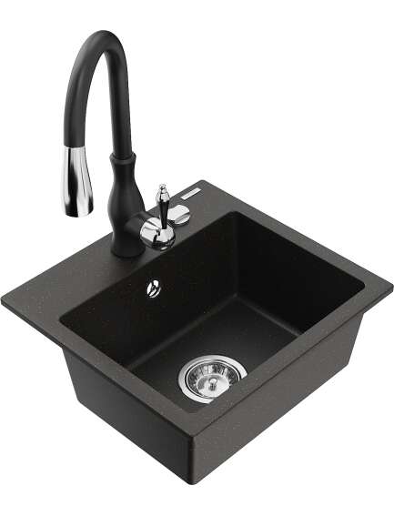 Dane techniczne: Zlewozmywak: Rozmiar: 435x410x171 mm Głębokość komory: 161 mm Wymiary komory: 375x280 mm Średnica odpływu: ø90 mm Typ: 1-komorowy Rodzaj: Wpuszczany w blat Kolor: Czarny/Złoty metalik Wykończenie syfonu: Chrom Materiał: Granit (80% kruszywo granitowe 20% żywice) Otwór przelewowy: Tak Otwory: ( bateria, automat ) 2 Wysoka odporność na zarysowania i przebarwienia Odporność na szok termiczny Powierzchnia ułatwiająca czyszczenie Jeden dodatkowy podfrezowany otwór do samodzielnego wybicia ø35 Bateria kuchenna: Materiał: Mosiądz Kolor: Czarny Głowica: Ceramiczna Perlator: Tak Typ: Jednouchwytowa Wysokość baterii: 410 mm Zasięg wylewki: 231 mm |