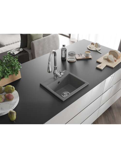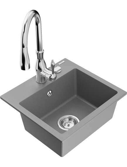 Dane techniczne: Zlewozmywak: Rozmiar: 435x410x171 mm Głębokość komory: 161 mm Wymiary komory: 375x280 mm Średnica odpływu: ø90 mm Typ: 1-komorowy Rodzaj: Wpuszczany w blat Kolor: Szary Wykończenie syfonu: Chrom Materiał: Granit (80% kruszywo granitowe 20% żywice) Otwór przelewowy: Tak Otwory: ( bateria, automat ) 2 Wysoka odporność na zarysowania i przebarwienia Odporność na szok termiczny Powierzchnia ułatwiająca czyszczenie Jeden dodatkowy podfrezowany otwór do samodzielnego wybicia ø35 Bateria kuchenna: Materiał: Mosiądz Kolor: Chrom Głowica: Ceramiczna Perlator: Tak Typ: Jednouchwytowa Wysokość baterii: 410 mm Zasięg wylewki: 231 mm |