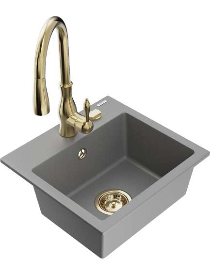 Mexen Milo zlewozmywak granitowy 1-komorowy z baterią kuchenną Savita, szary - 6505-71-672601-50