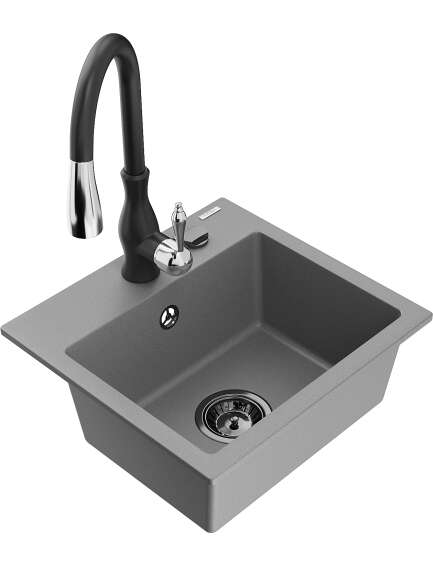 Dane techniczne: Zlewozmywak: Rozmiar: 435x410x171 mm Głębokość komory: 161 mm Wymiary komory: 375x280 mm Średnica odpływu: ø90 mm Typ: 1-komorowy Rodzaj: Wpuszczany w blat Kolor: Szary Wykończenie syfonu: Czarny Materiał: Granit (80% kruszywo granitowe 20% żywice) Otwór przelewowy: Tak Otwory: ( bateria, automat ) 2 Wysoka odporność na zarysowania i przebarwienia Odporność na szok termiczny Powierzchnia ułatwiająca czyszczenie Jeden dodatkowy podfrezowany otwór do samodzielnego wybicia ø35 Bateria kuchenna: Materiał: Mosiądz Kolor: Czarny Głowica: Ceramiczna Perlator: Tak Typ: Jednouchwytowa Wysokość baterii: 410 mm Zasięg wylewki: 231 mm |