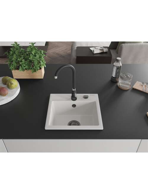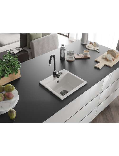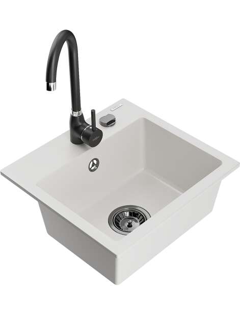 Mexen Milo zlewozmywak granitowy 1-komorowy z baterią kuchenną Telma, biały - 6505-20-670200-70