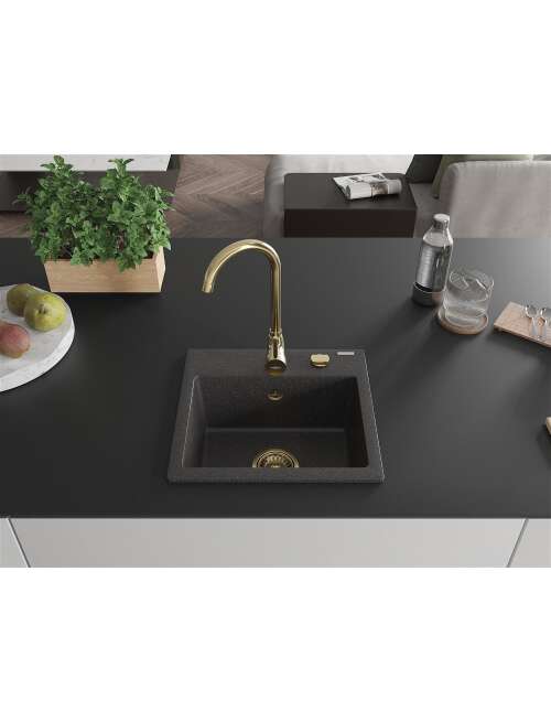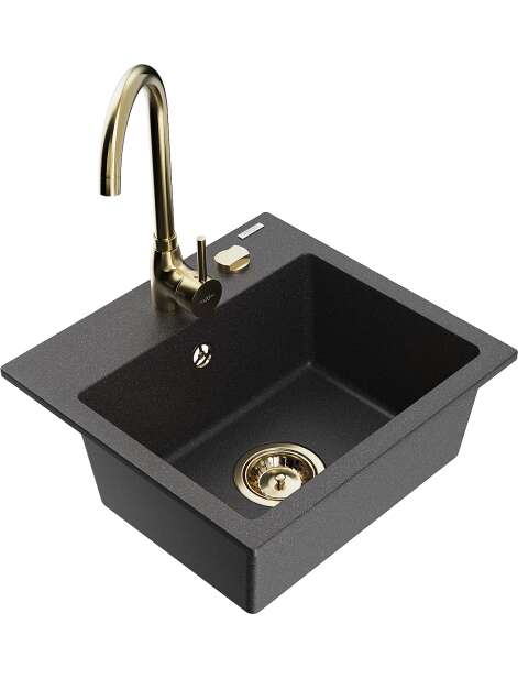 Mexen Milo zlewozmywak granitowy 1-komorowy z baterią kuchenną Telma, czarny nakrapiany - 6505-76-670200-50