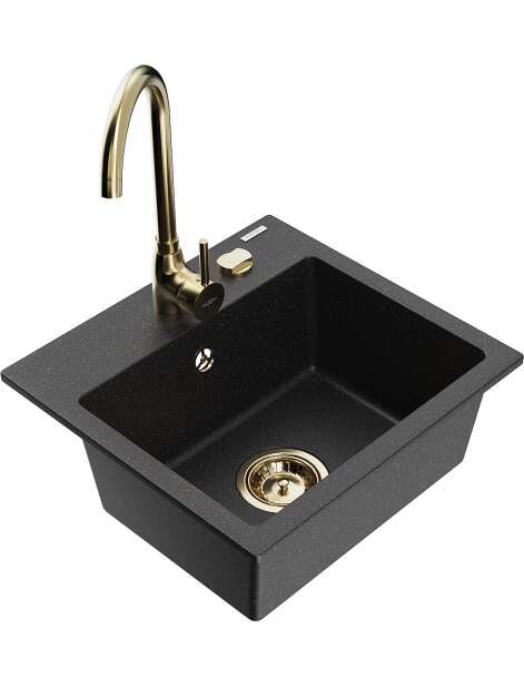 Mexen Milo zlewozmywak granitowy 1-komorowy z baterią kuchenną Telma, czarny/srebrny - 6505-73-670200-50