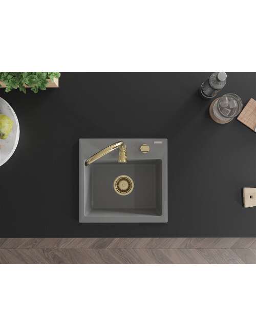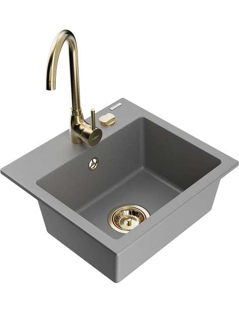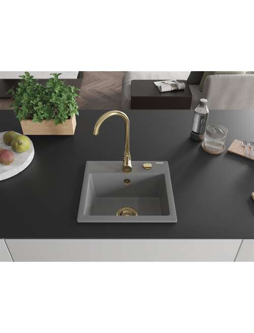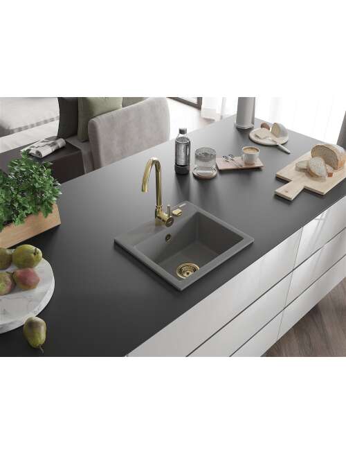 Mexen Milo zlewozmywak granitowy 1-komorowy z baterią kuchenną Telma, szary - 6505-71-670200-50
