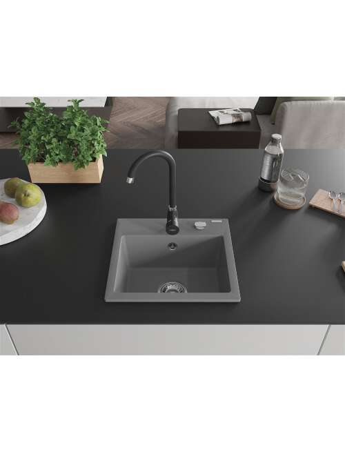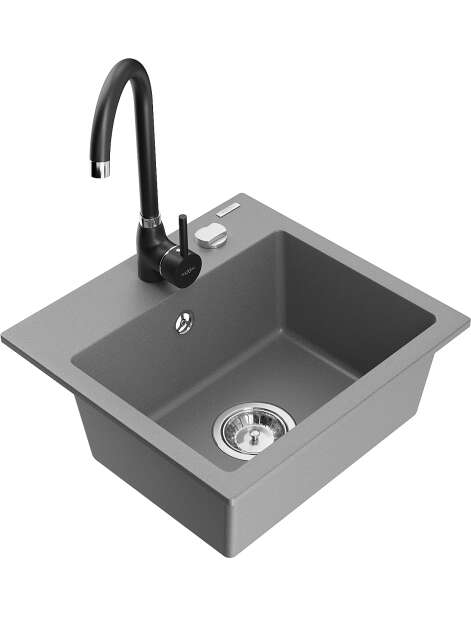 Mexen Milo zlewozmywak granitowy 1-komorowy z baterią kuchenną Telma, szary - 6505-71-670200-70
