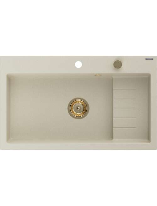 Specyfikacja produktu:Rozmiar: 800x480x210 mm Głębokość komory: 200 mm Wymiary komory: 734x357 mm Średnica odpływu: ø90 mm Rodzaj: 1-komorowy Typ: Wpuszczany w blat Materiał: Granit Kolor: Beżowy Wykończenie syfonu: Złoty Otwór przelewowy: Tak Otwór na baterie: Tak Syfon automatyczny w komplecie Wysoka odporność na zarysowania i przebarwienia Odporność na szok termiczny Powierzchnia ułatwiająca czyszczenie Jeden dodatkowy podfrezowany otwór do samodzielnego wybicia ø35 |
