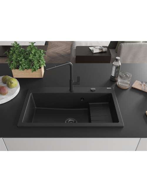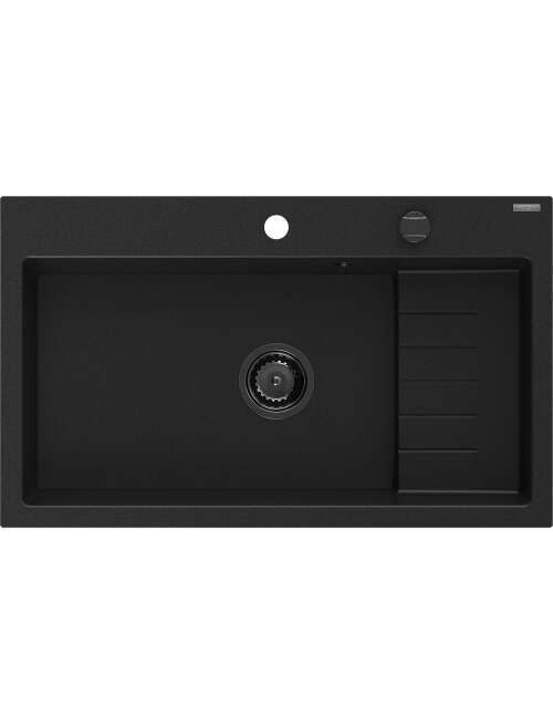 Mexen Omar zlewozmywak granitowy 1-komorowy 800 x 480 mm, czarny, syfon czarny - 6520801005-77-B