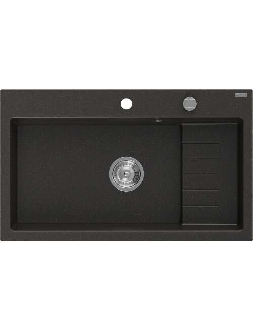 Mexen Omar zlewozmywak granitowy 1-komorowy 800 x 480 mm, czarny/złoty metalik, syfon chrom - 6520801005-75