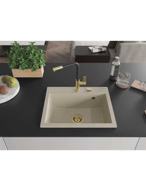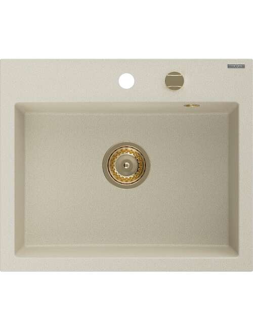 Mexen Oscar zlewozmywak granitowy 1-komorowy 580 x 490 mm, beżowy, syfon złoty - 6519581000-69-G