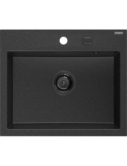Mexen Oscar zlewozmywak granitowy 1-komorowy 580 x 490 mm, czarny/srebrny metalik, syfon czarny - 6519581000-73-B