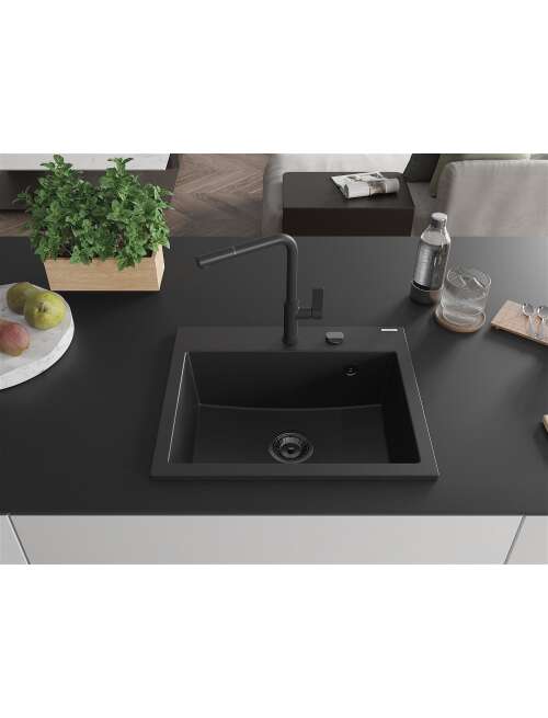 Mexen Oscar zlewozmywak granitowy 1-komorowy 580 x 490 mm, czarny, syfon czarny - 6519581000-77-B