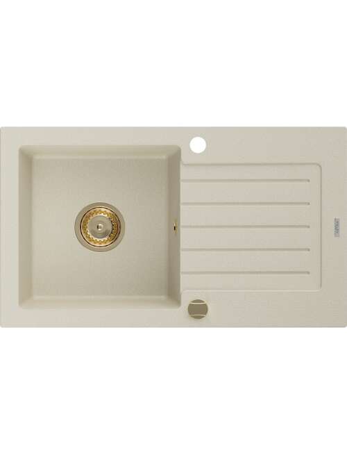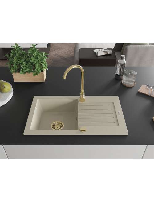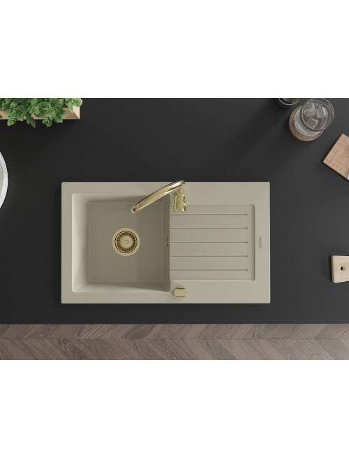 Mexen Pablo zlewozmywak granitowy 1-komorowy z ociekaczem 752 x 436 mm, beżowy, syfon złoty - 6510751010-69-G