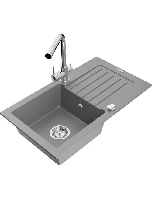 Mexen Pablo zlewozmywak granitowy 1-komorowy z ociekaczem i baterią kuchenną Duero, szary - 6510-71-671600-00