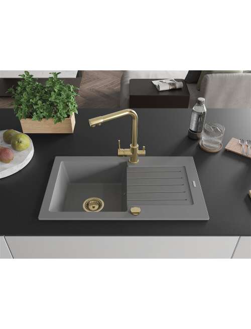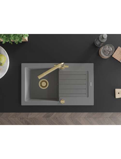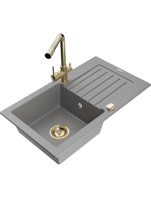 Mexen Pablo zlewozmywak granitowy 1-komorowy z ociekaczem i baterią kuchenną Duero, szary - 6510-71-671600-50