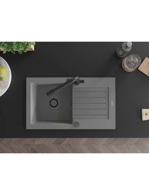 Mexen Pablo zlewozmywak granitowy 1-komorowy z ociekaczem i baterią kuchenną Duero, szary - 6510-71-671600-70-B